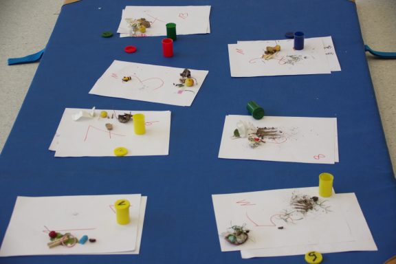 Die Kinder konnten ihrer Kreativität freien Lauf lassen, indem sie Musikinstrumente ausprobierten, mit Farben experimentierten, kleine Wollmonster bastelten, die Bewegungslandschaft in der Turnhalle eroberten oder die Schule bei einem Rundgang kennenlernten.