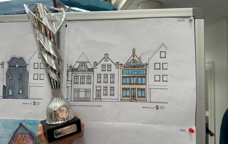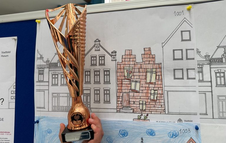 In der Husumer Innenstadt ist seit einiger Zeit eine Baulücke. Was kann da wohl Neues entstehen? Diese Frage stellten sich unsere ehemaligen Viertklässler und Viertklässlerinnen, sowie Schülerinnen und Schüler aus der Bürgerschule und der Klaus-Groth-Schule. Jede Schule durfte 15 Bilder ins Rennen schicken.